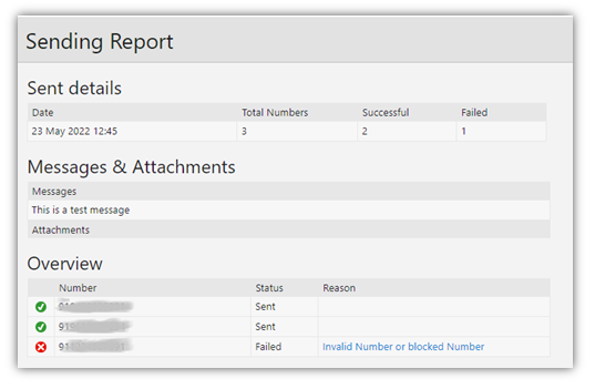 After the messages are sent, you can view a full detailed report of the messages sent for every number. It will show if the message was successfully sent or even if the number is a non whatsapp number.